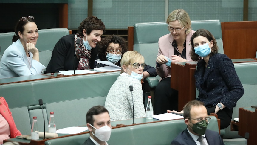 The teal MPs have stuck closely together during the first sitting fortnight.(ABC News: Nick Haggarty)